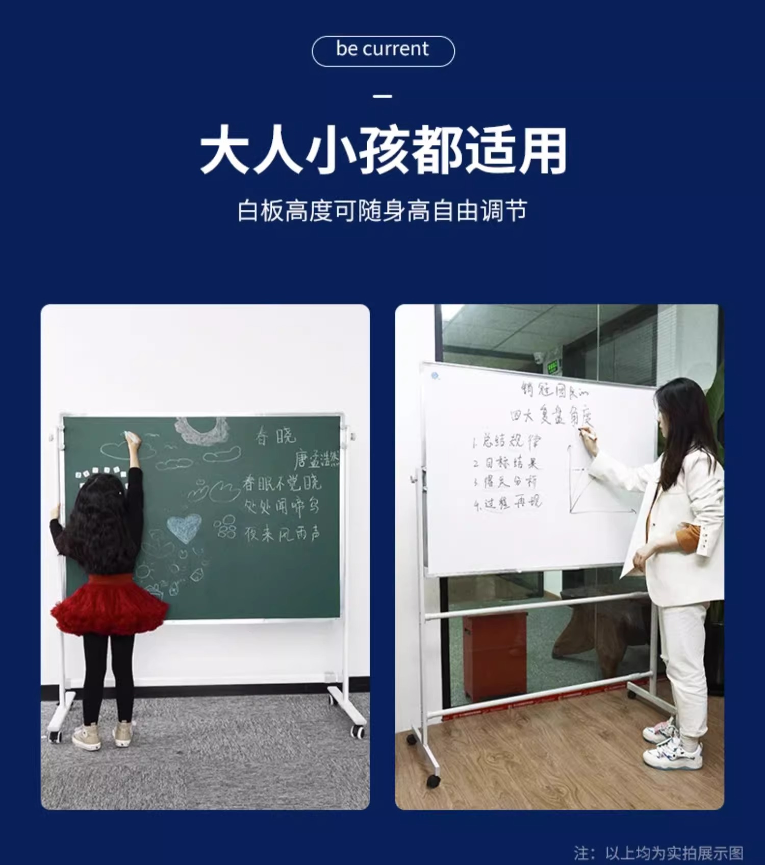 白板支架式教学磁性黑板写字板家用儿童教学可移动办公室会议绿板