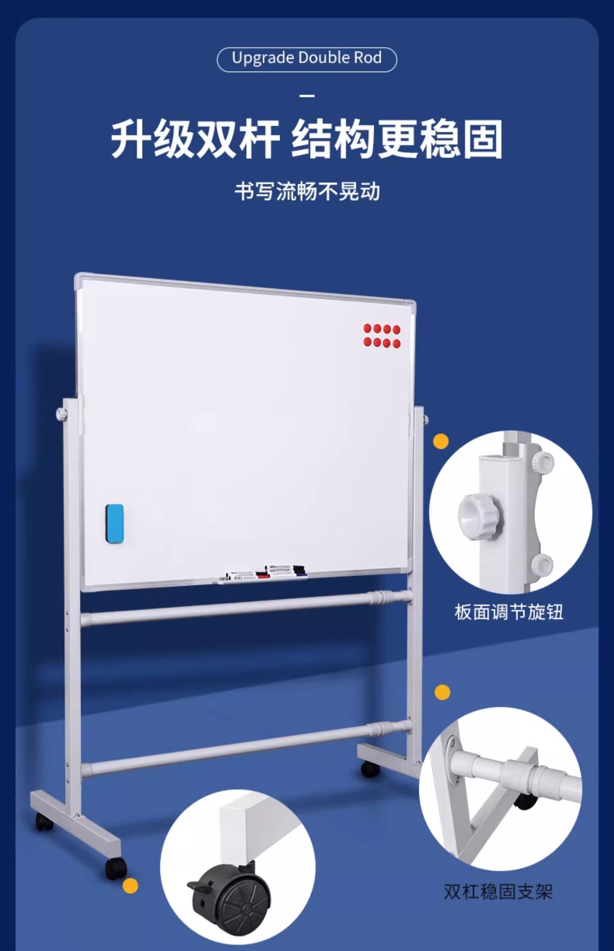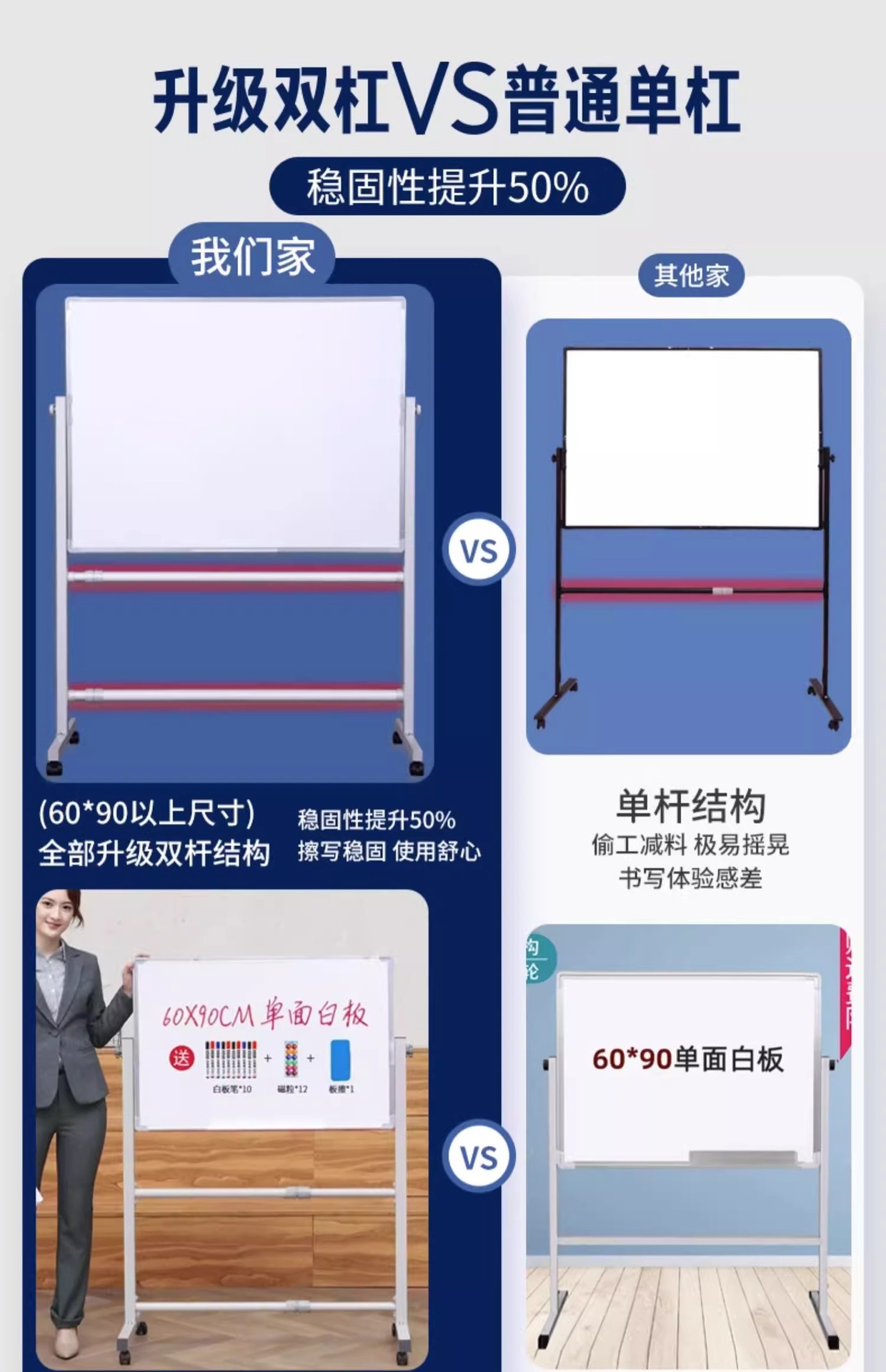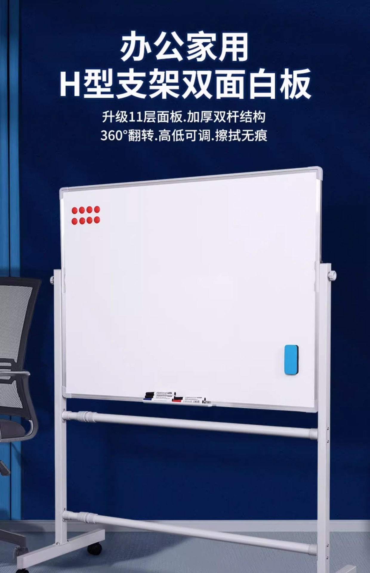 椭圆钢架款90*120双面白板银支架+配件大礼包