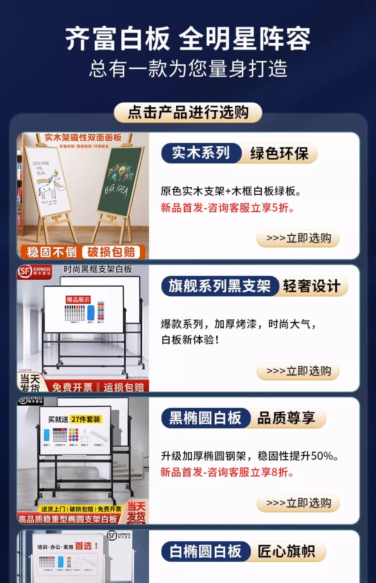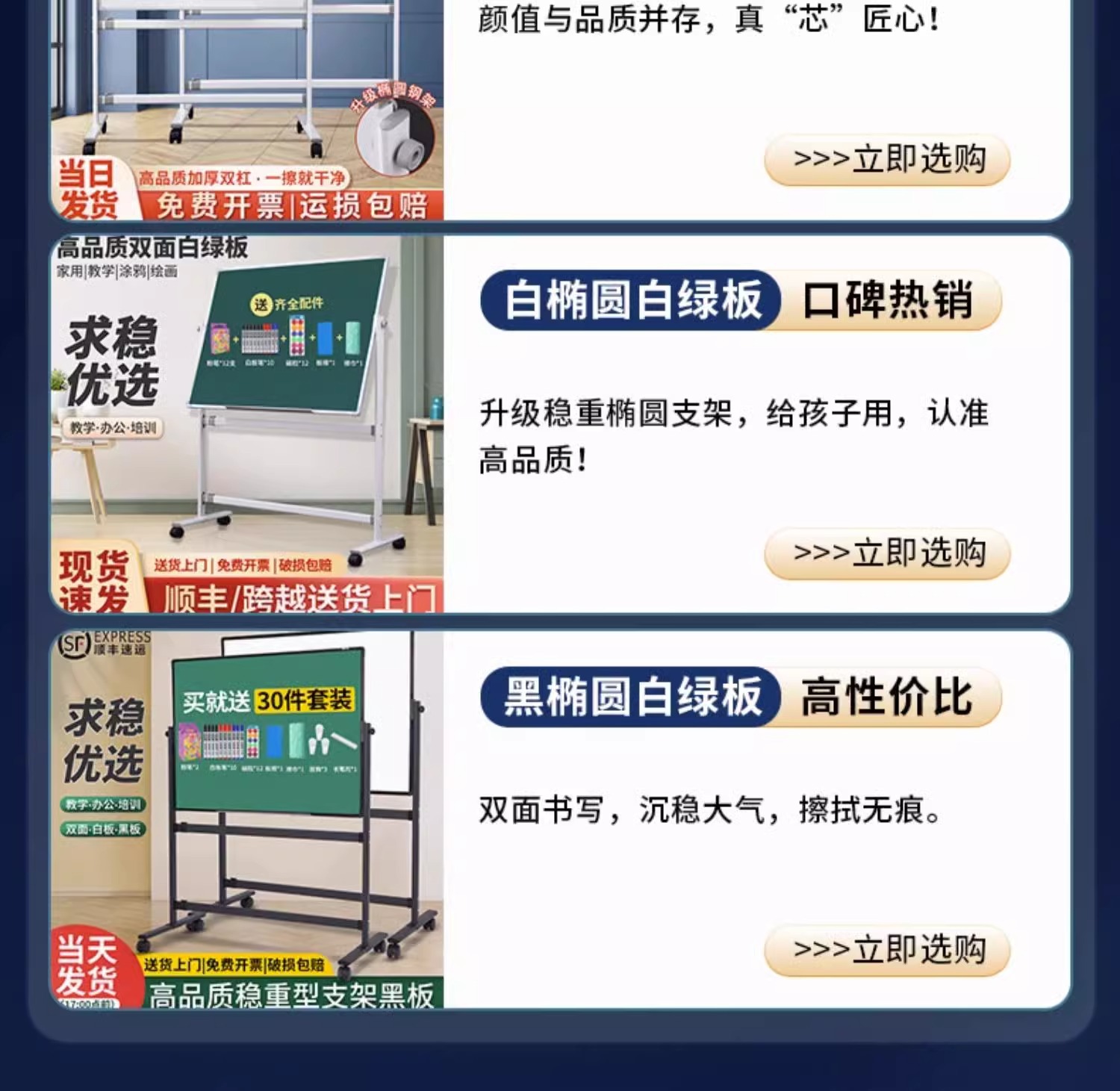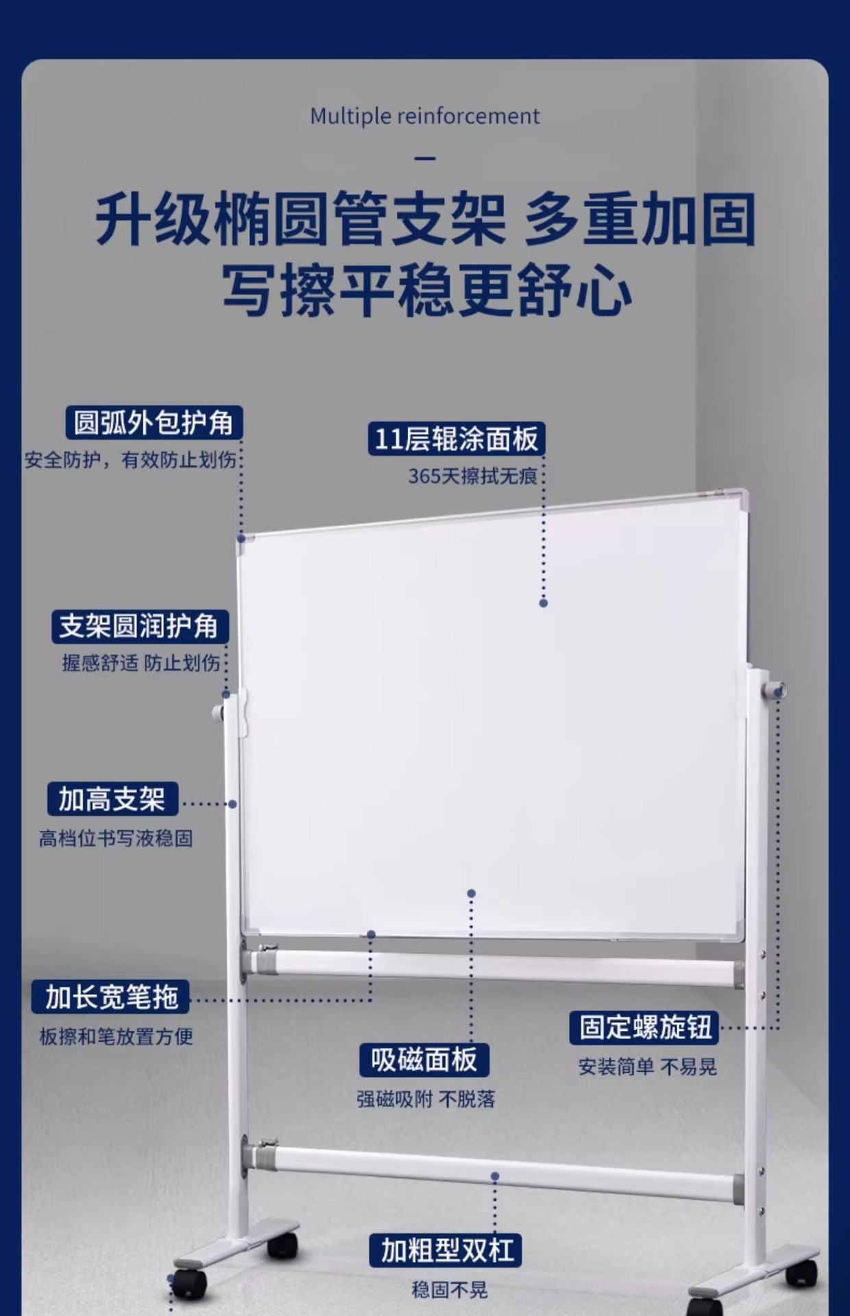 椭圆钢架款90*120双面白板银支架+配件大礼包