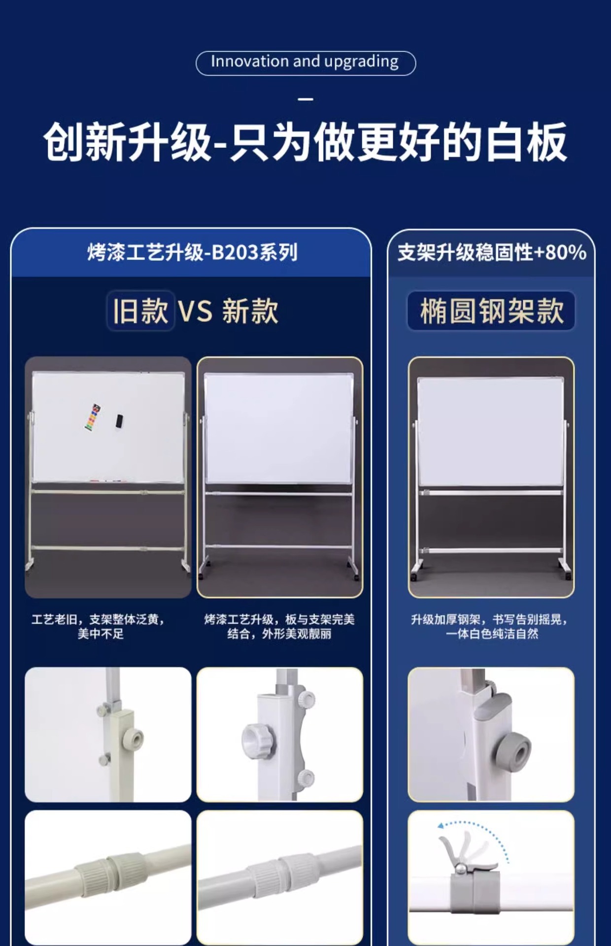 椭圆钢架款100*200双面白板+白支架+配件大礼包