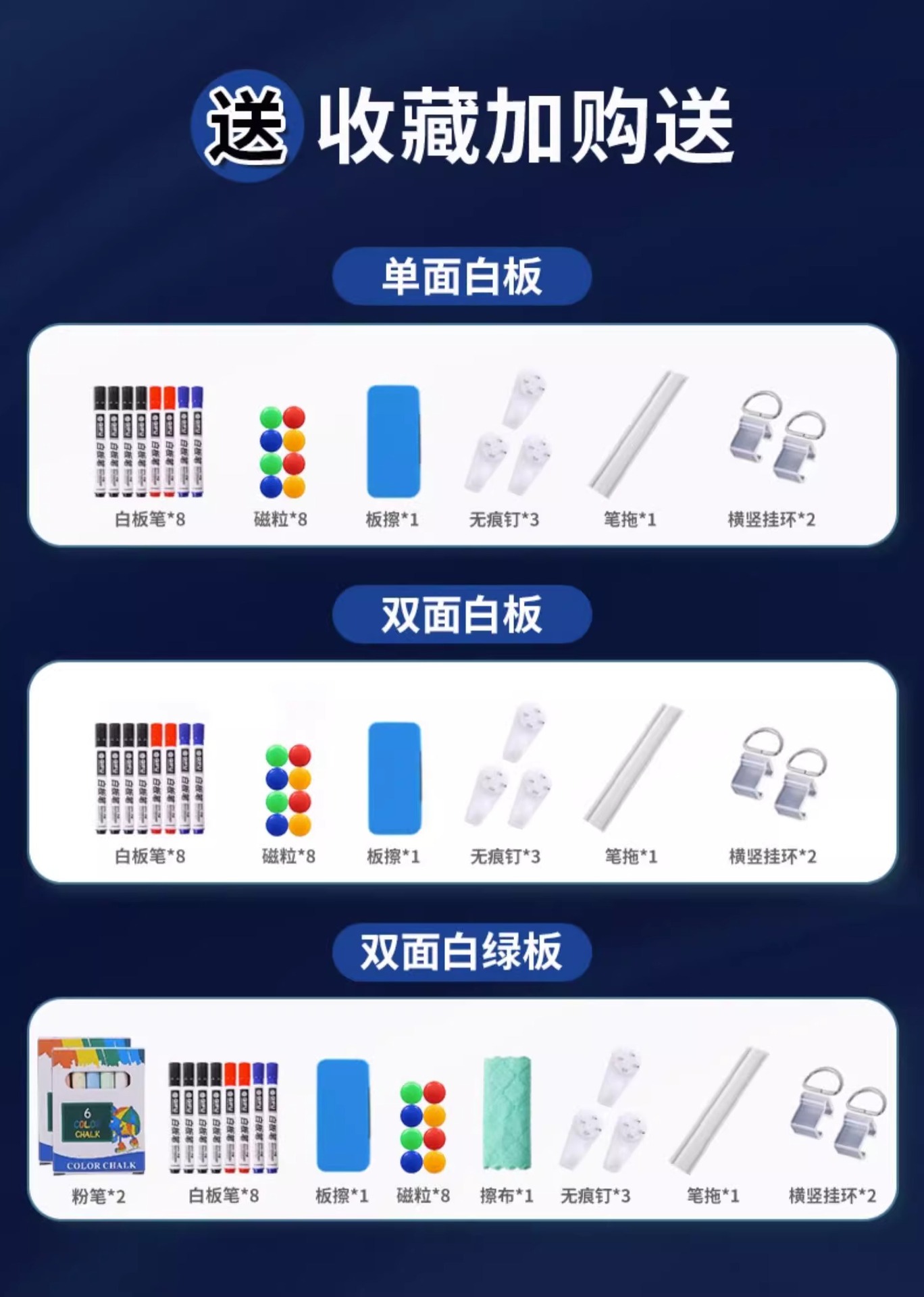 80*100双面白绿板银支架+配件大礼包