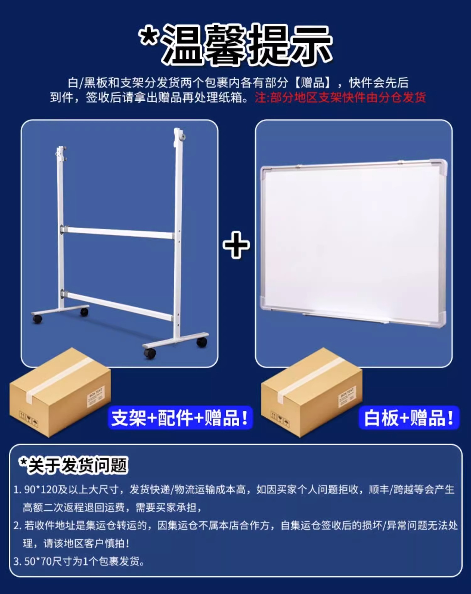 70*100黑框双面白板黑支架+配件大礼包