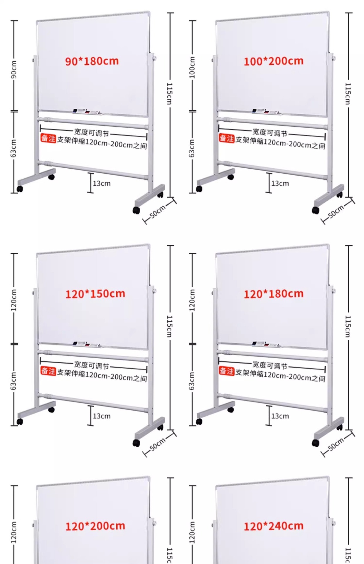 120*240双面白板银支架+配件大礼包