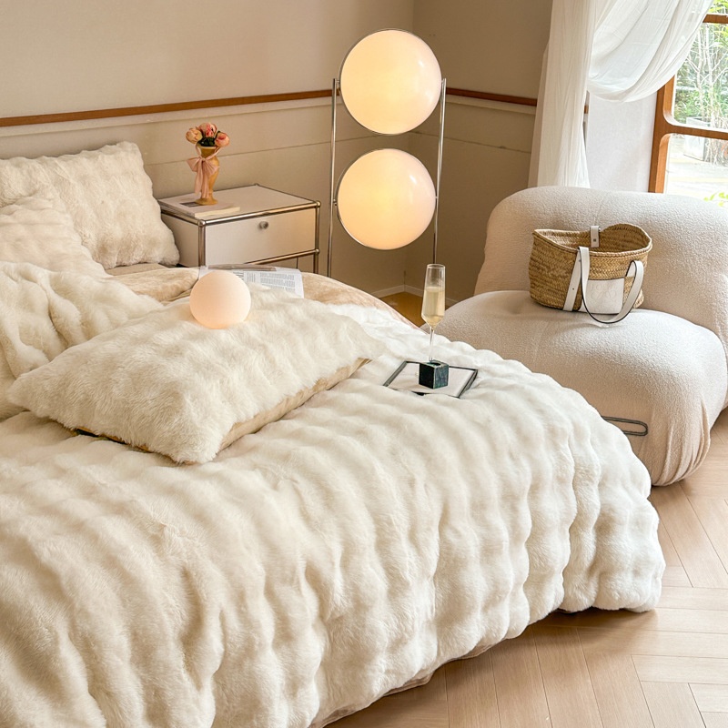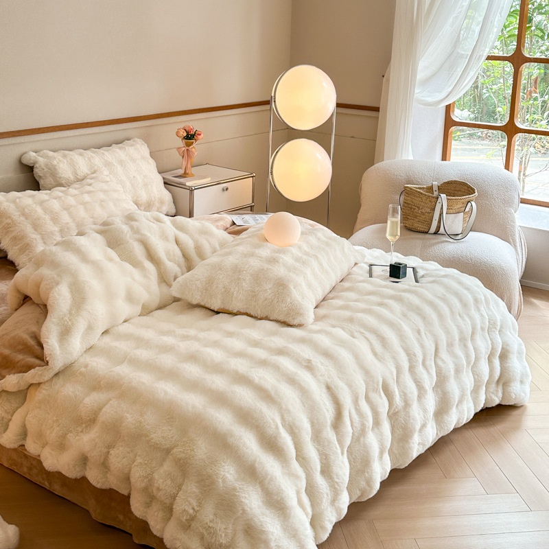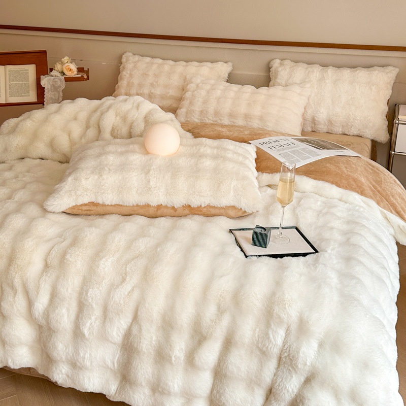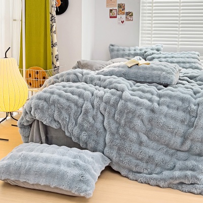a类母婴级大泡泡兔绒加厚牛奶绒被子三件套加厚保暖抗寒冬被temu