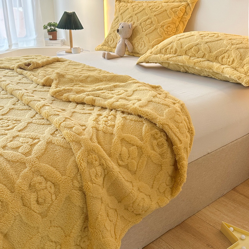 三叶草塔芙绒加厚跨境现货提花珊瑚绒毛毯法兰绒毯子盖毯礼品外贸