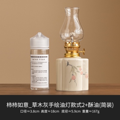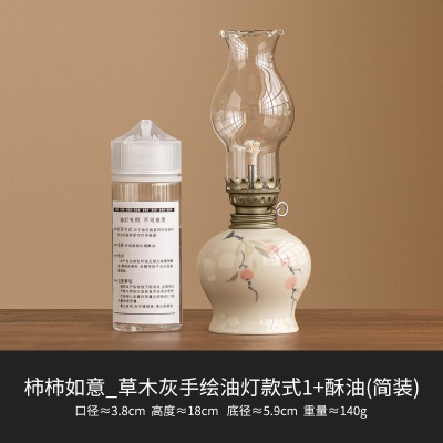 草木灰纯手绘油灯海棠_柿柿如意【送酥油】