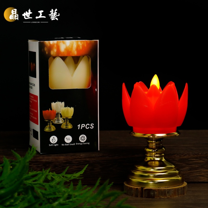 商品名稱:led金底座仿真莲花蜡烛灯 寺庙佛前进贡灯佛灯家用长明灯安全无烟