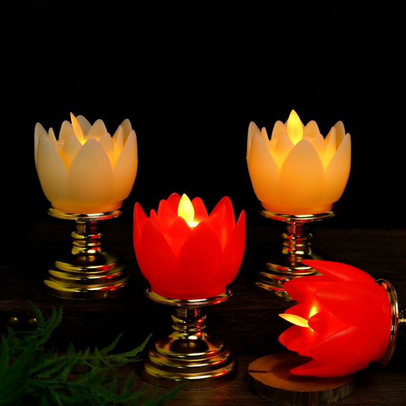 led金底座仿真莲花蜡烛灯 寺庙佛前进贡灯佛灯家用长明灯安全无烟
