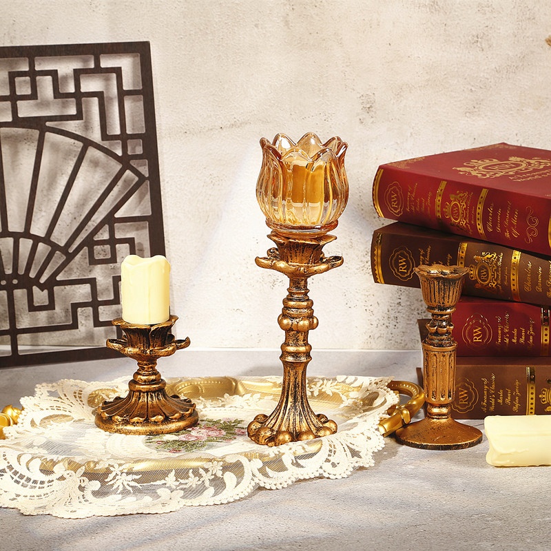 复古烛台摆件拍照装饰道具蜡烛烛台桌面摆件古风小夜灯古风摆件