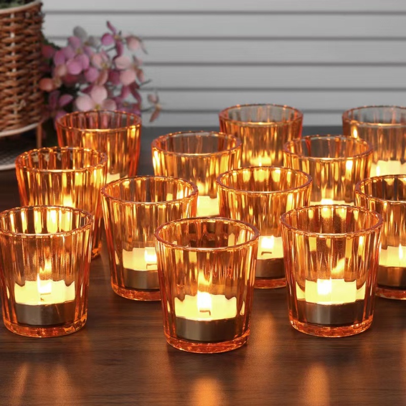 跨境5560竖纹光影杯茶蜡杯日系玻璃蜡烛杯餐桌浪漫氛围蜡烛灯现货