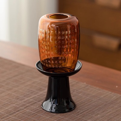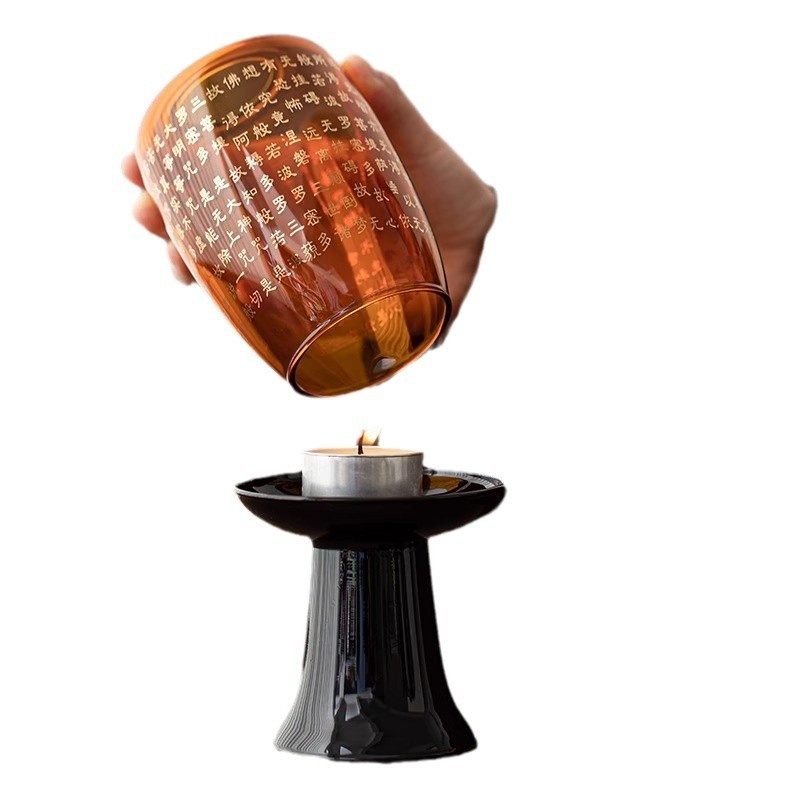 心经蜡烛烛台家用香薰玻璃摆件复古中式禅意氛围灯古风玻璃烛台