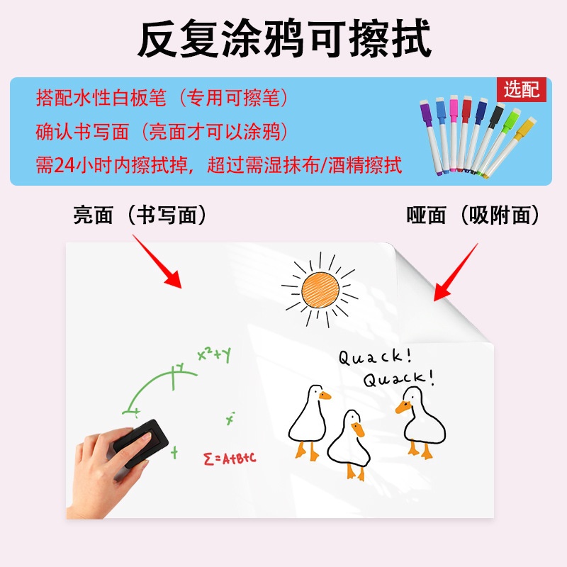 1:静电白板贴 ,家用教学涂鸦画板贴,可写可擦,静电吸附不伤墙。