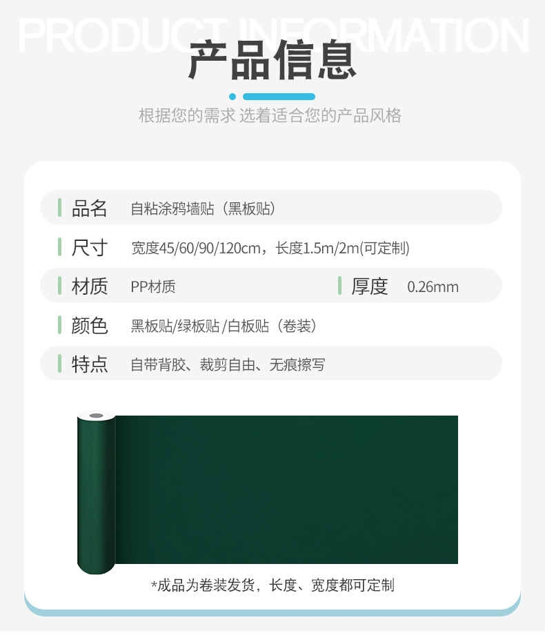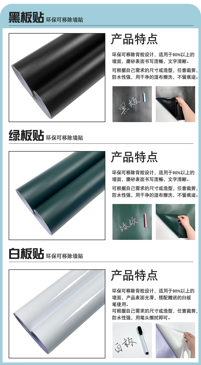 商品名稱:黑板贴自粘教学墙贴纸白板贴纸家用儿童涂鸦墙贴加厚办公室软墙贴