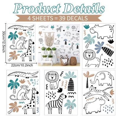- 商品名稱:跨境线条动物墙贴丛林幼儿园儿童房客厅装饰PVC自粘创意儿童墙贴