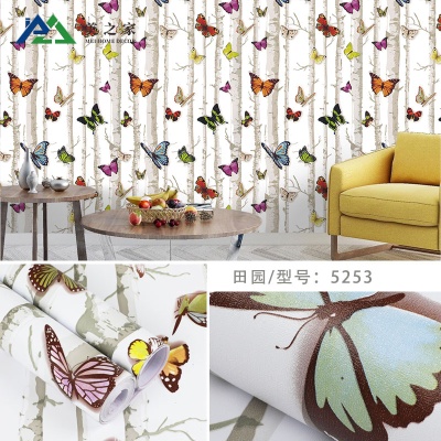 墙纸ins风自粘植物花卉墙纸自粘即时贴墙贴现货批发防潮卧室装修
