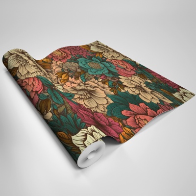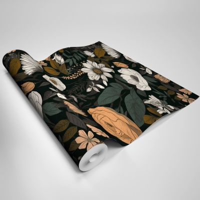 北欧风无缝拼接厨房客厅自粘墙纸防水防潮磨砂pvc植物壁纸墙贴