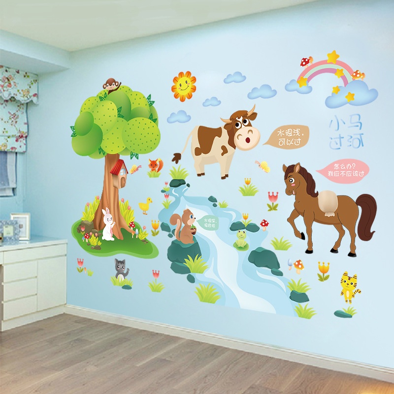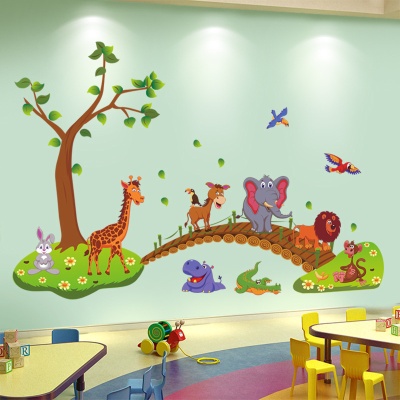 卡通贴纸幼儿园宝宝动物儿童房装饰卧室背景墙壁纸墙贴画墙纸自粘