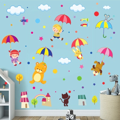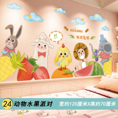 商品名稱:卡通贴纸幼儿园宝宝动物儿童房装饰卧室背景墙壁纸墙贴画墙纸自粘