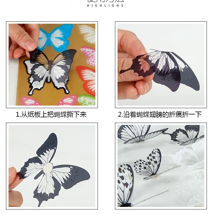 3D立体仿真蝴蝶墙贴 厂家直销卧室客厅家居场景背景装饰贴饰