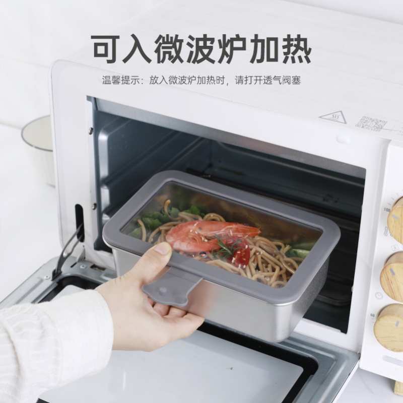304不锈钢饭盒可进微波炉玻璃盖防漏家用便当盒长方形密封午餐盒