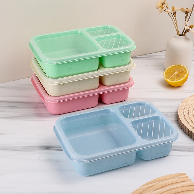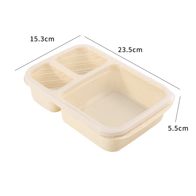 小麦秸秆分格饭盒家用三格餐盒便当盒学生上班族便携午餐盒保鲜盒