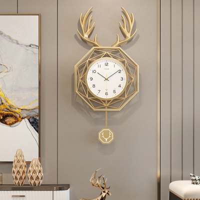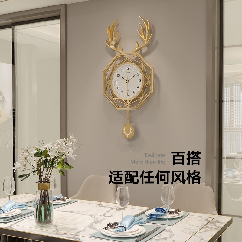 北欧鹿头钟表挂钟客厅创意时尚简约时钟挂墙石英钟网红挂表家用