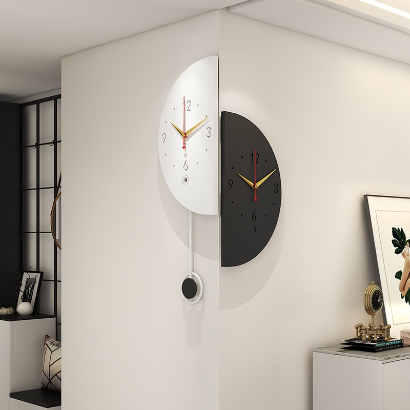 2024新款客厅双面转角挂钟家用拐角阳角时钟挂表创意轻奢壁灯钟表