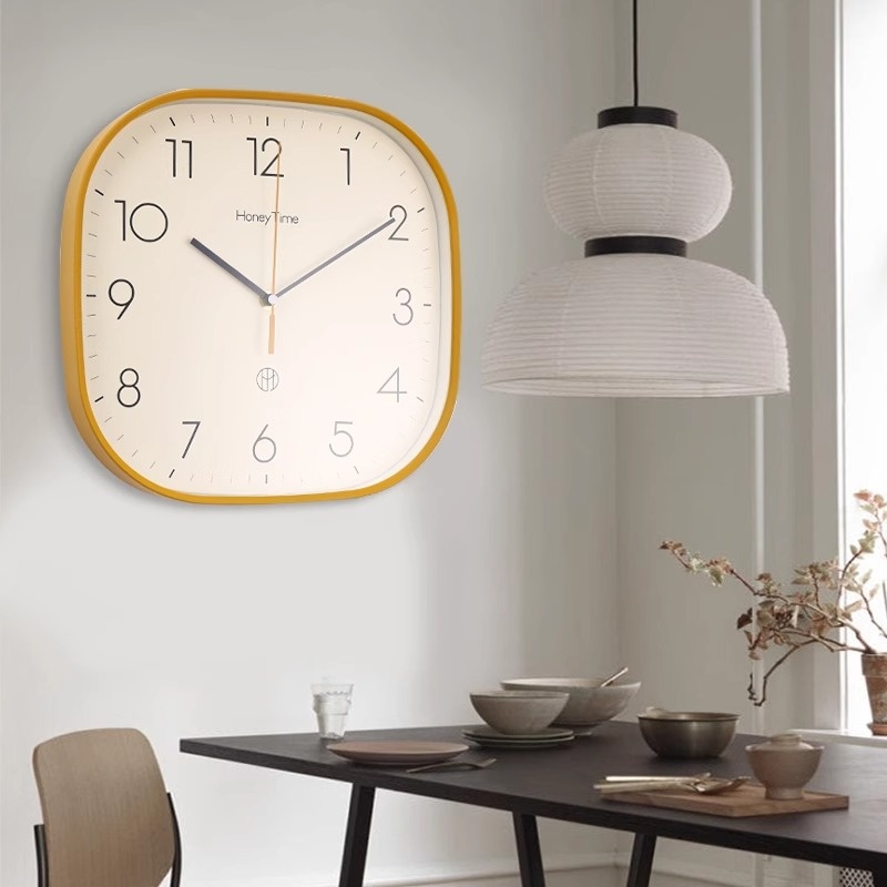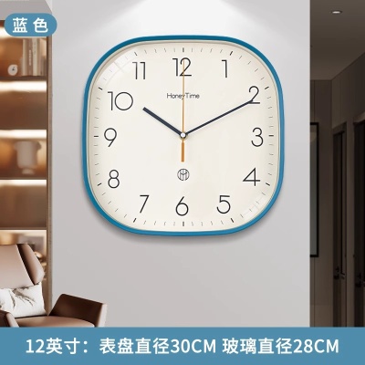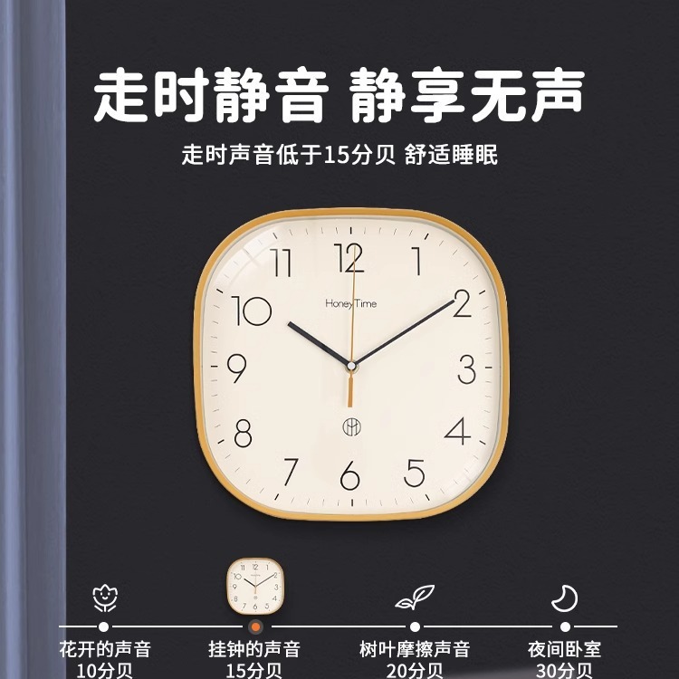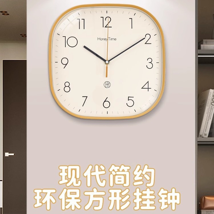 现代简约静音钟表免打孔挂钟客厅家用时尚北欧创意时钟方形挂墙表