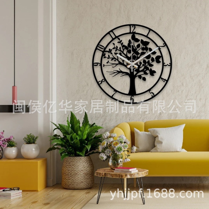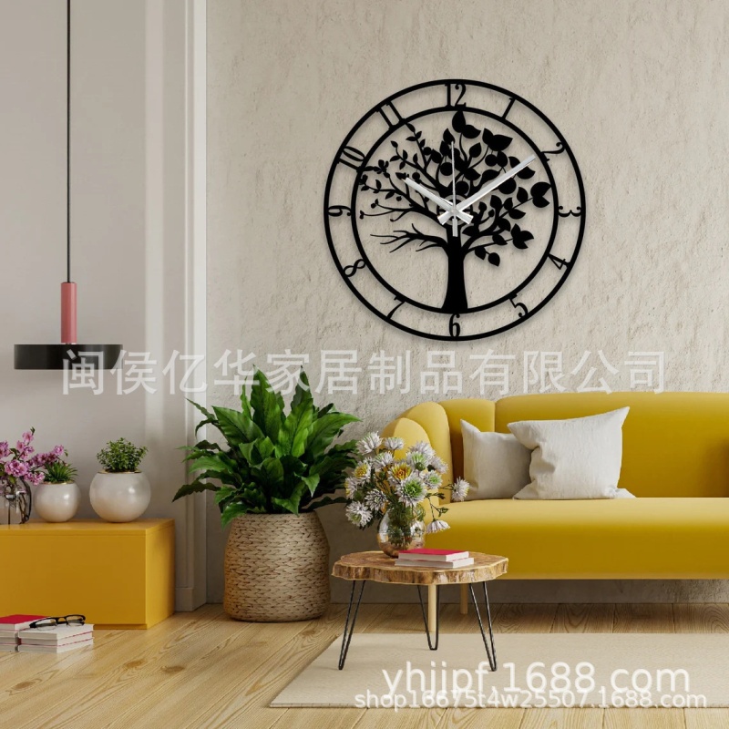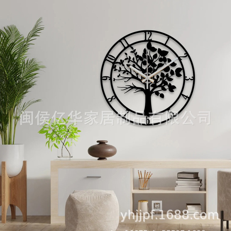 铁艺壁钟生命树创意挂钟轻奢网红钟表简约现代时钟挂钟装饰挂墙钟