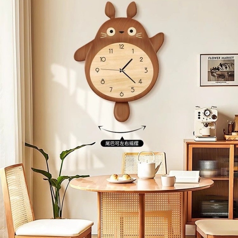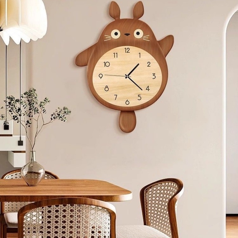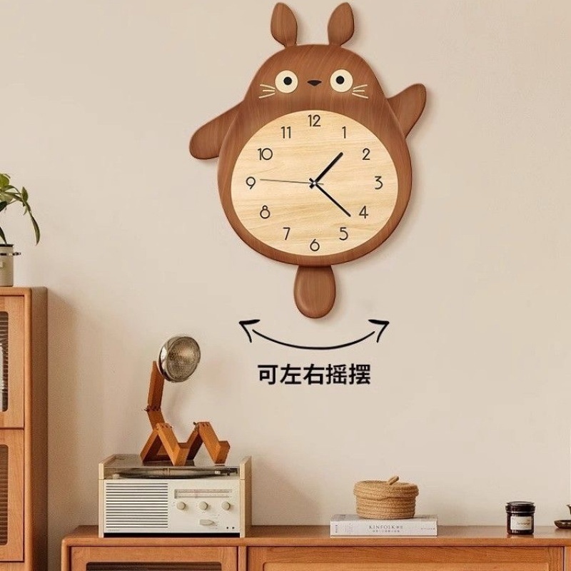 商品名稱:龙猫卡通原木挂钟装饰画餐厅2024新款钟表创意客厅时钟挂墙杰斯克