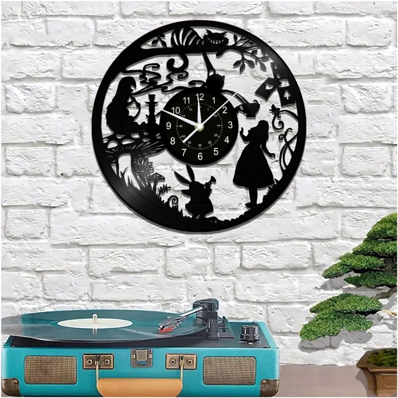 爱丽丝黑胶唱片挂钟,跨境时钟复古静音壁挂式日历原创客厅装饰