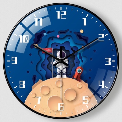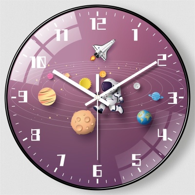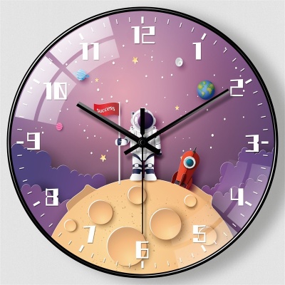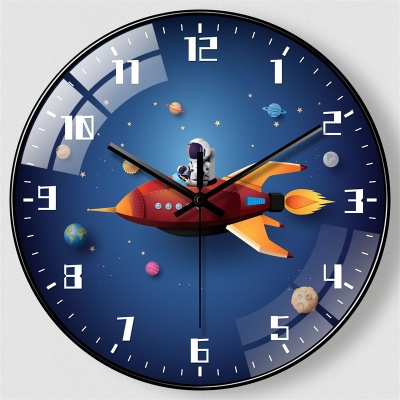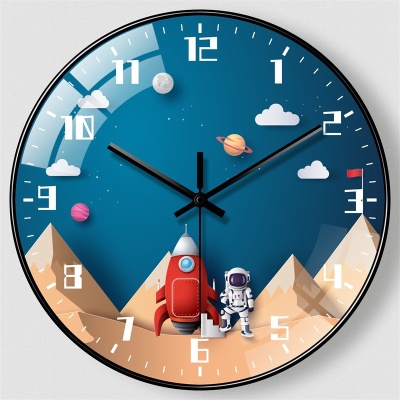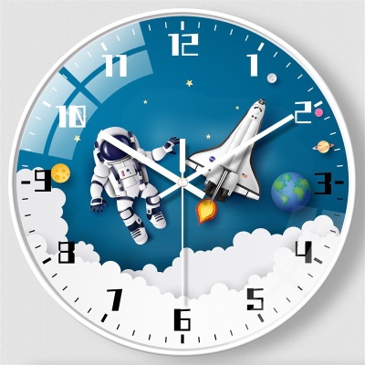 创意宇航员儿童挂钟家用客厅卧室时钟静音发墙上儿童时钟儿童闹钟