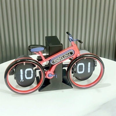 创意自行车翻页时钟家用桌面个性单车造型翻页钟时尚装饰礼品座钟