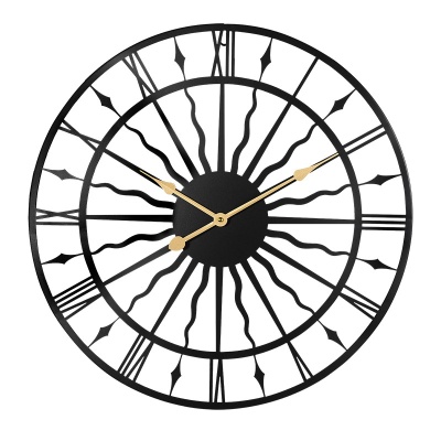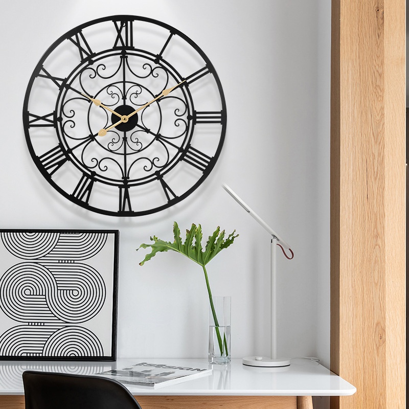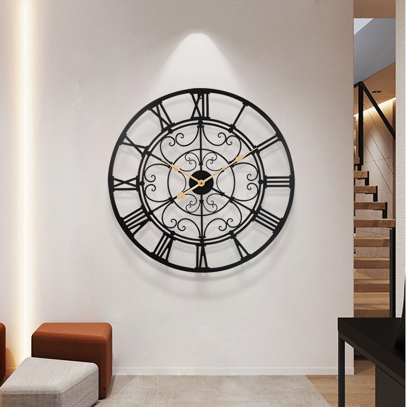 跨境铁艺复古时钟亚马逊热卖静音钟表壁挂创意圆形挂钟