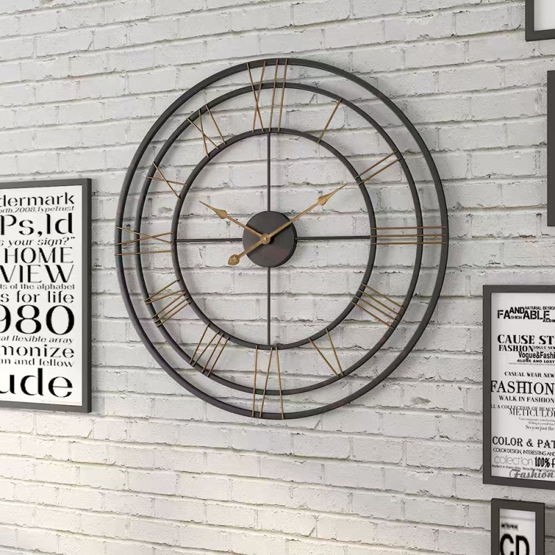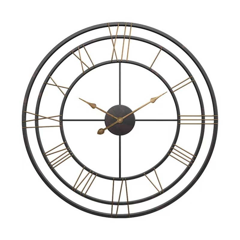 亚马逊热卖美式创意壁钟铁艺钟表 家居客厅时钟金属圆形挂钟批发