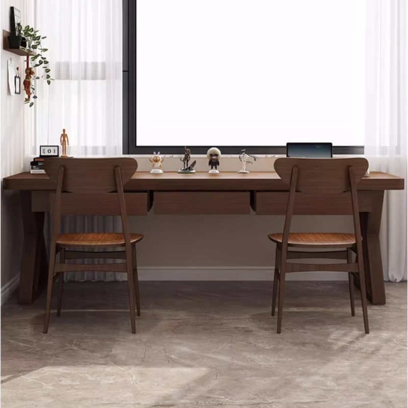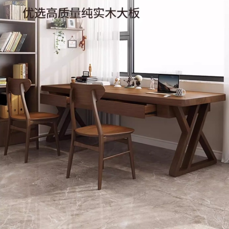 实木书桌抽屉家用靠墙窄桌双人长条学习桌写字工作台式办公电脑桌