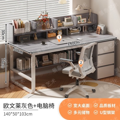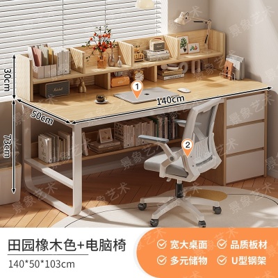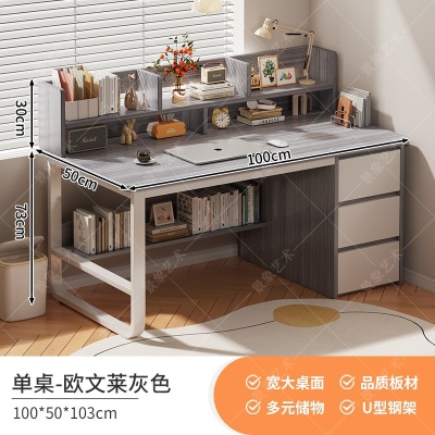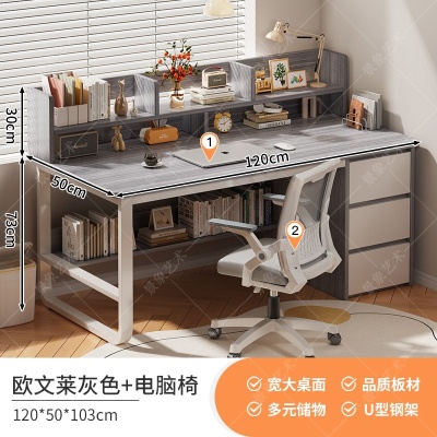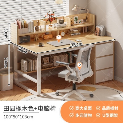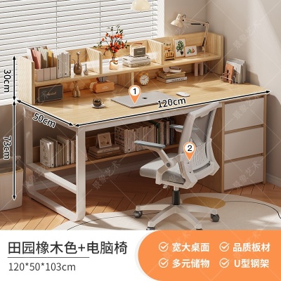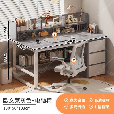 电脑桌现代简约书桌书架一体学生写字台家用卧室简易办公桌子