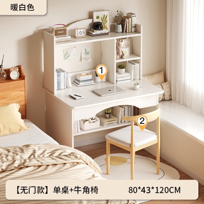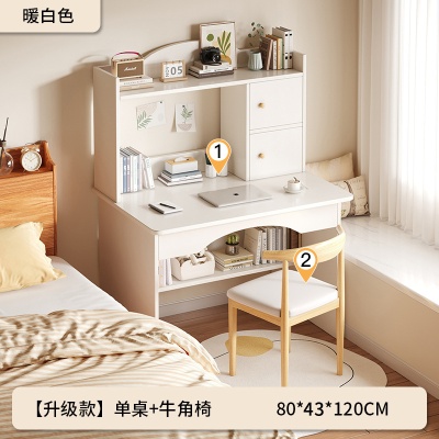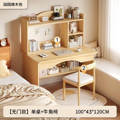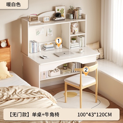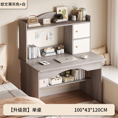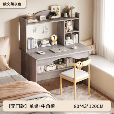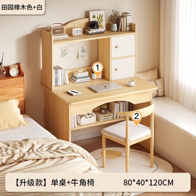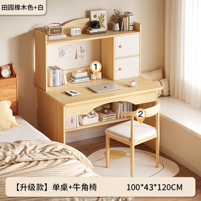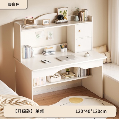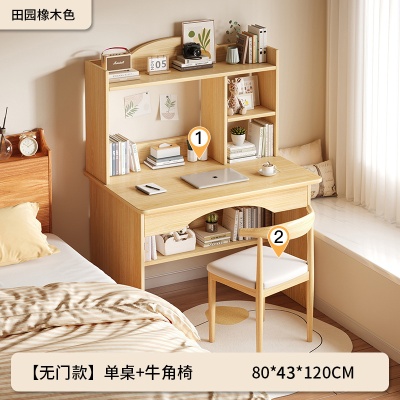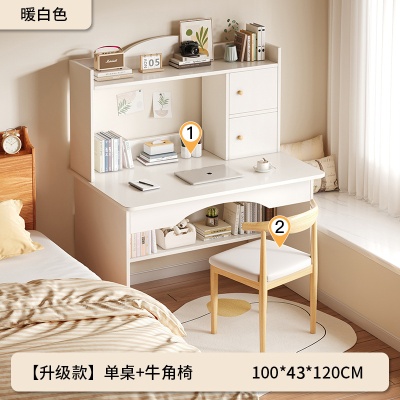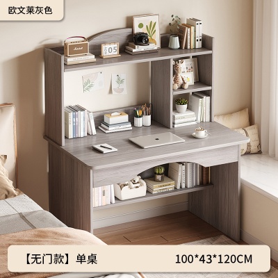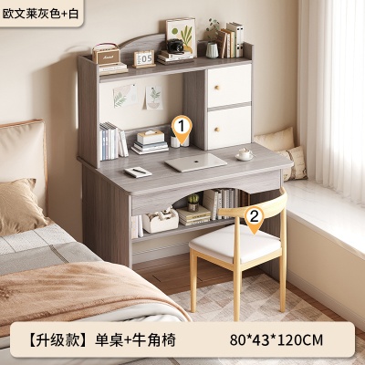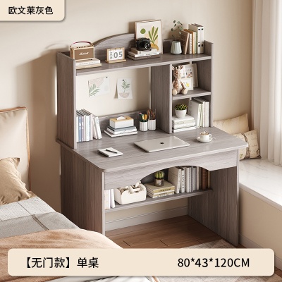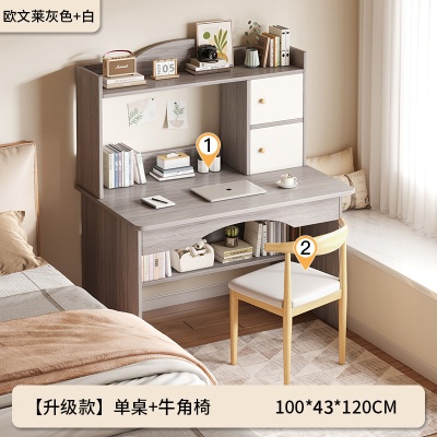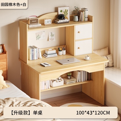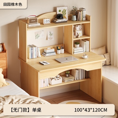 电脑桌台式家用学生学习写字书架一体桌卧室床边桌书房书桌办公桌