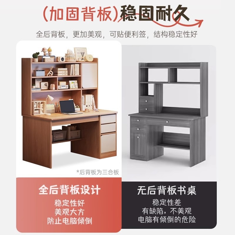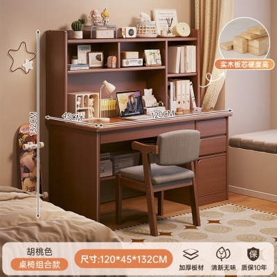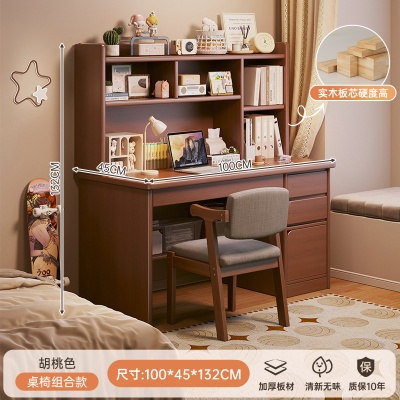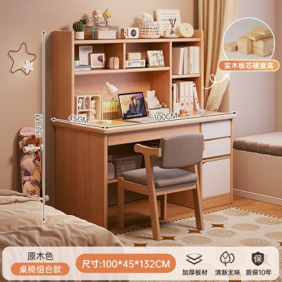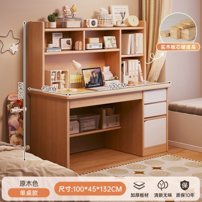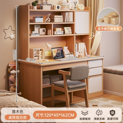 商品名稱:实木生态板书桌学生家用卧室学习写字桌现代简约一体带书柜电脑桌
