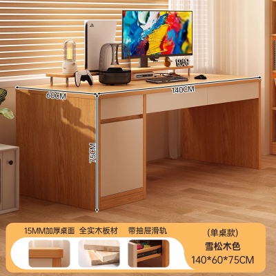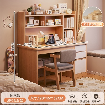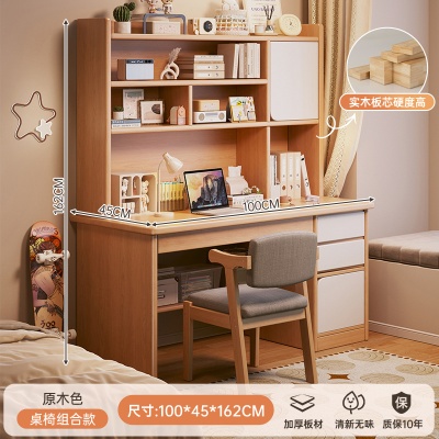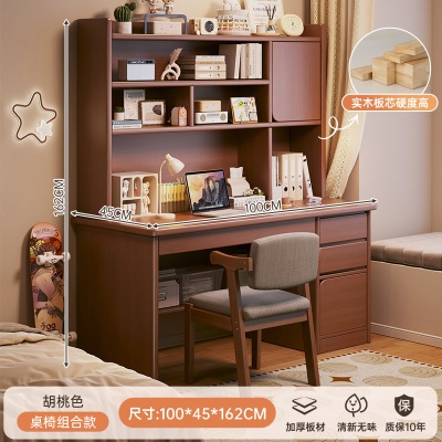 实木生态板书桌学生家用卧室学习写字桌现代简约一体带书柜电脑桌