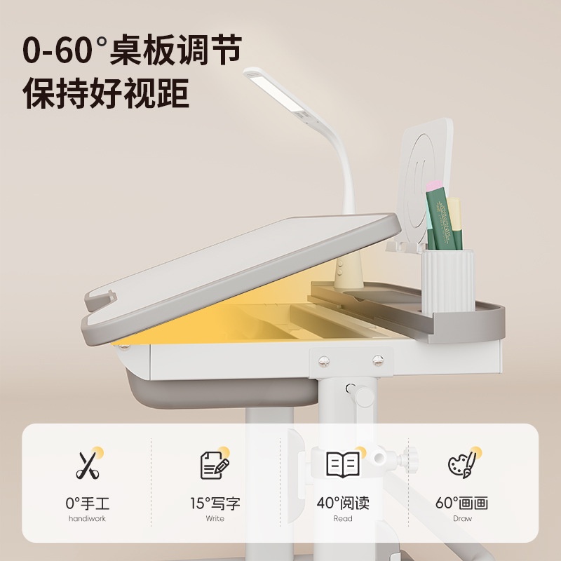 勤学款:灰白-送阅读器/手摇升降/绘画桌面/护眼台灯