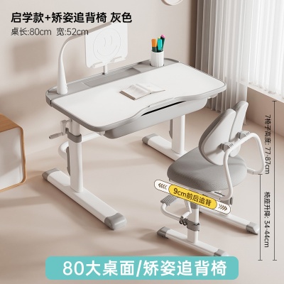 启学旗舰款(灰):护眼台灯/矫姿追背椅/阅读书架/80大桌面
