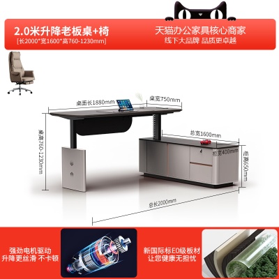 商品名稱:电动升降老板桌办公桌椅组合简约现代总裁经理领导办公室班台书桌