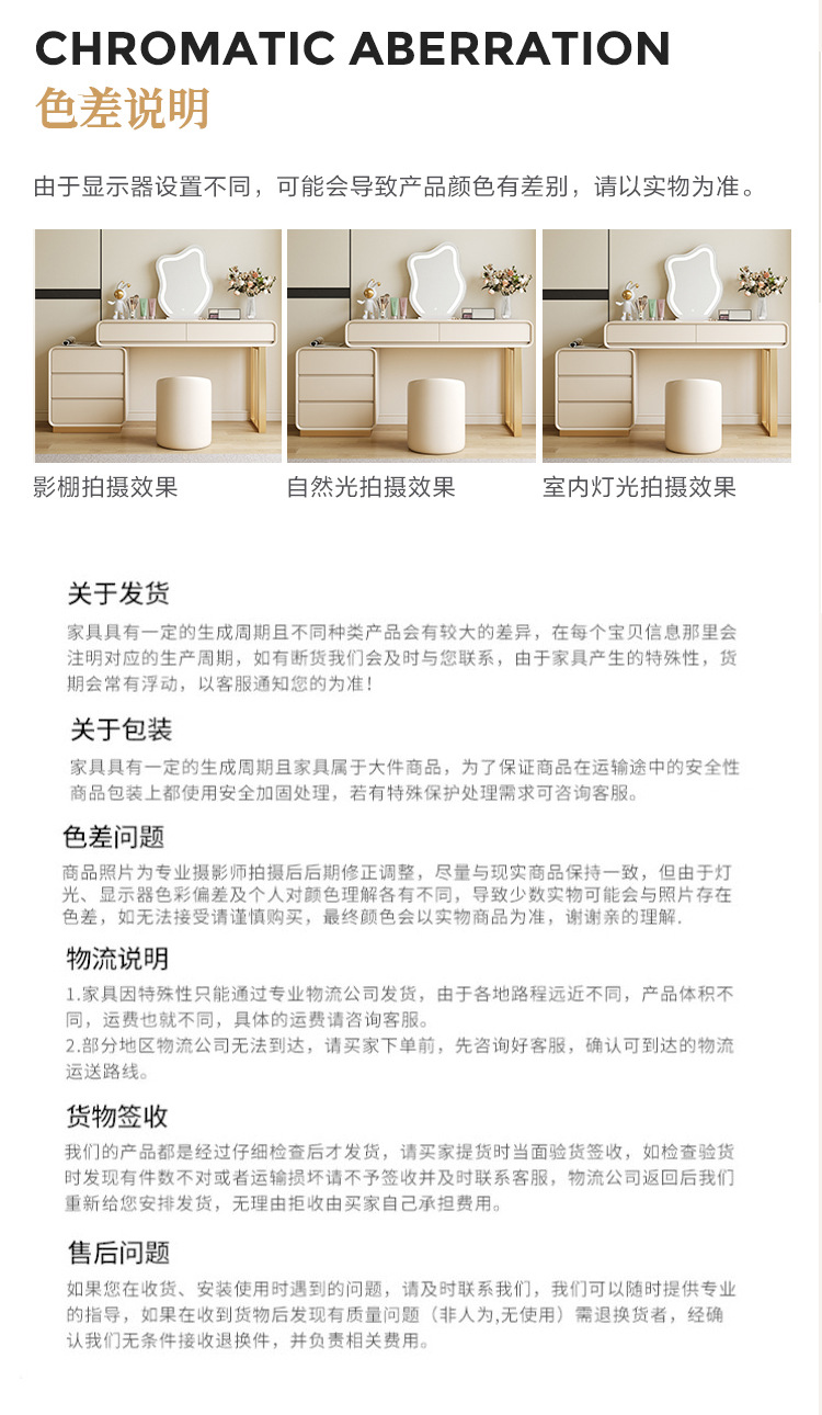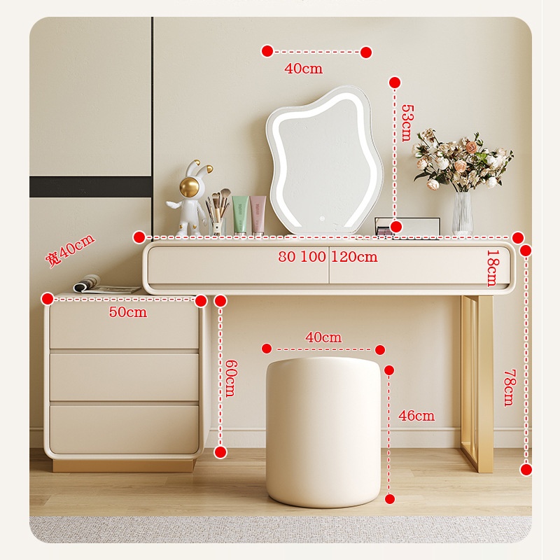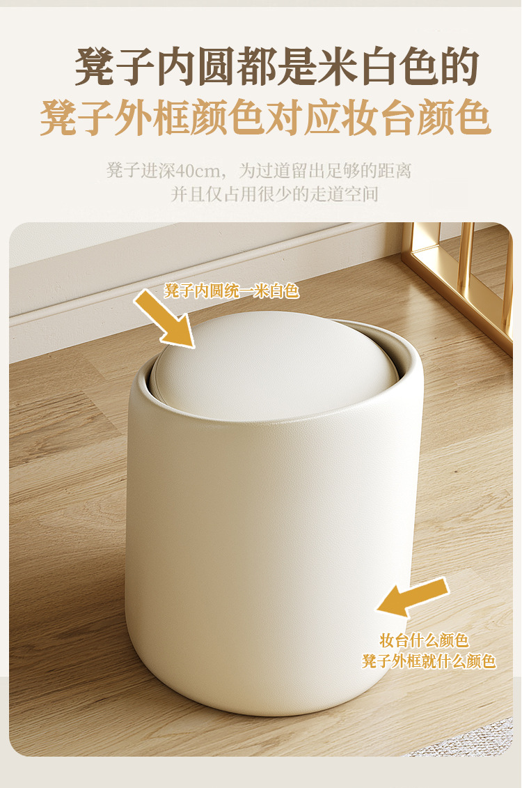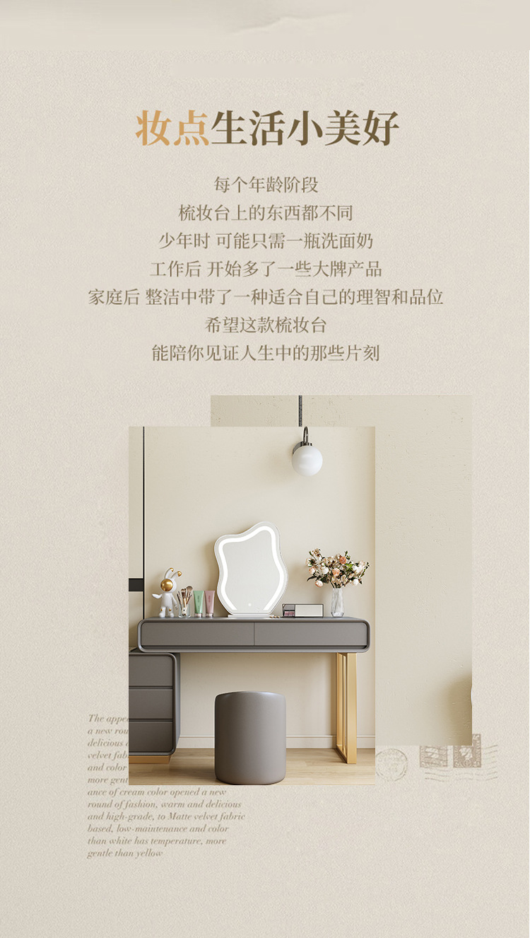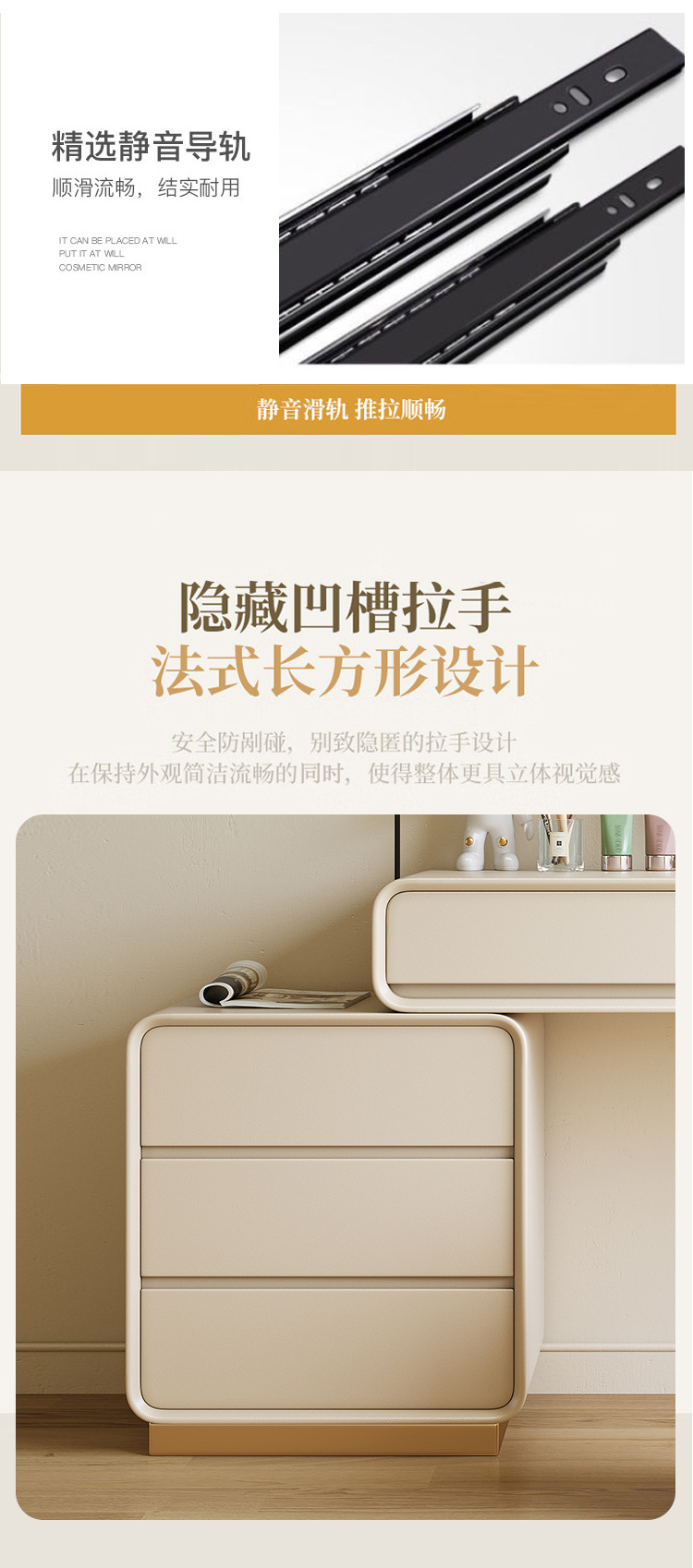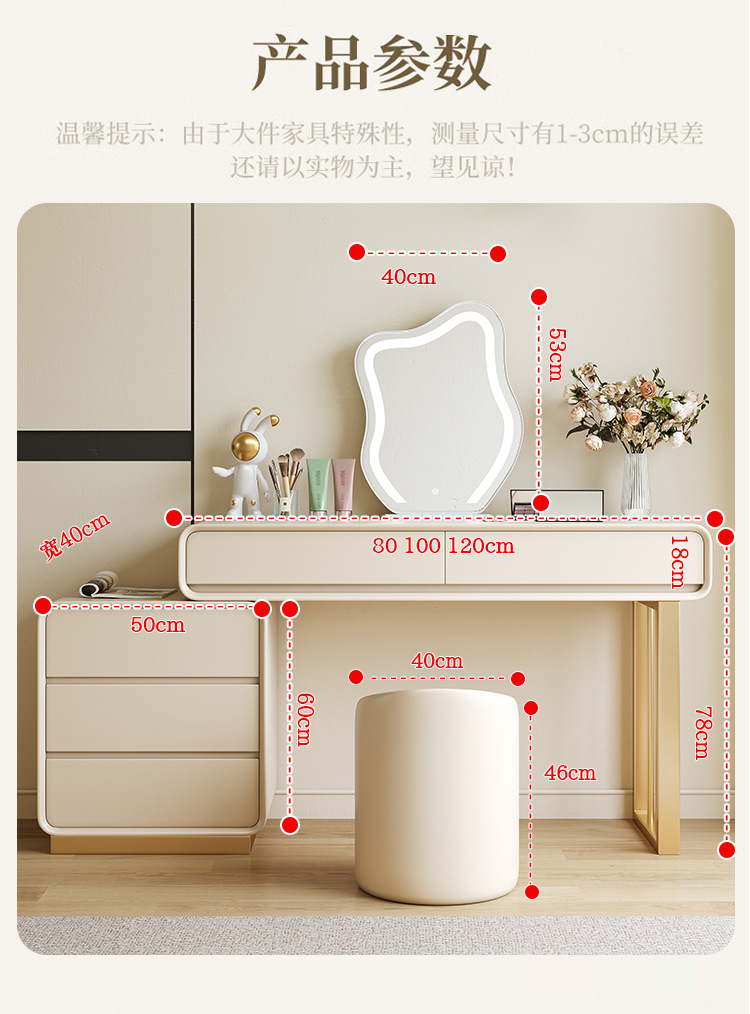 米白色|全钢脚 妆台+妆凳(不含边柜镜子)