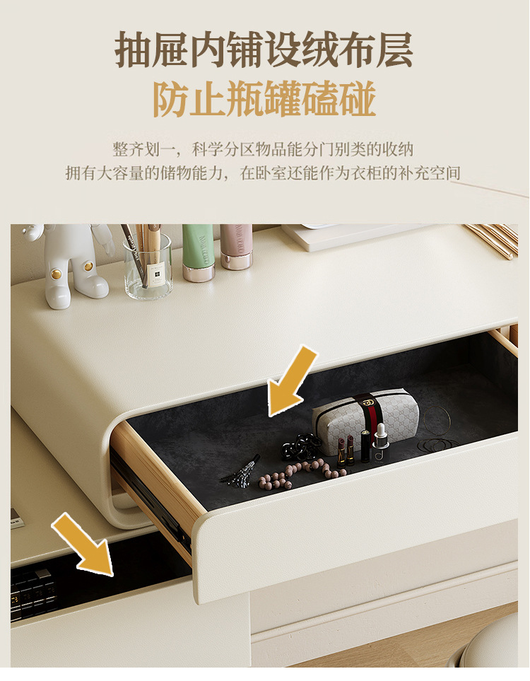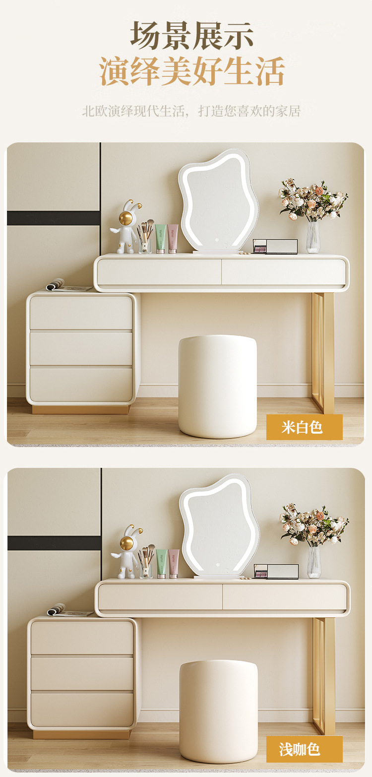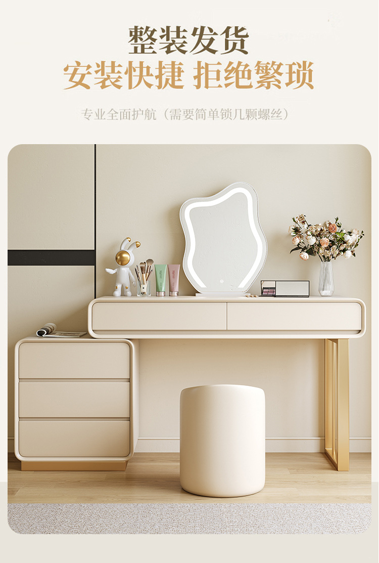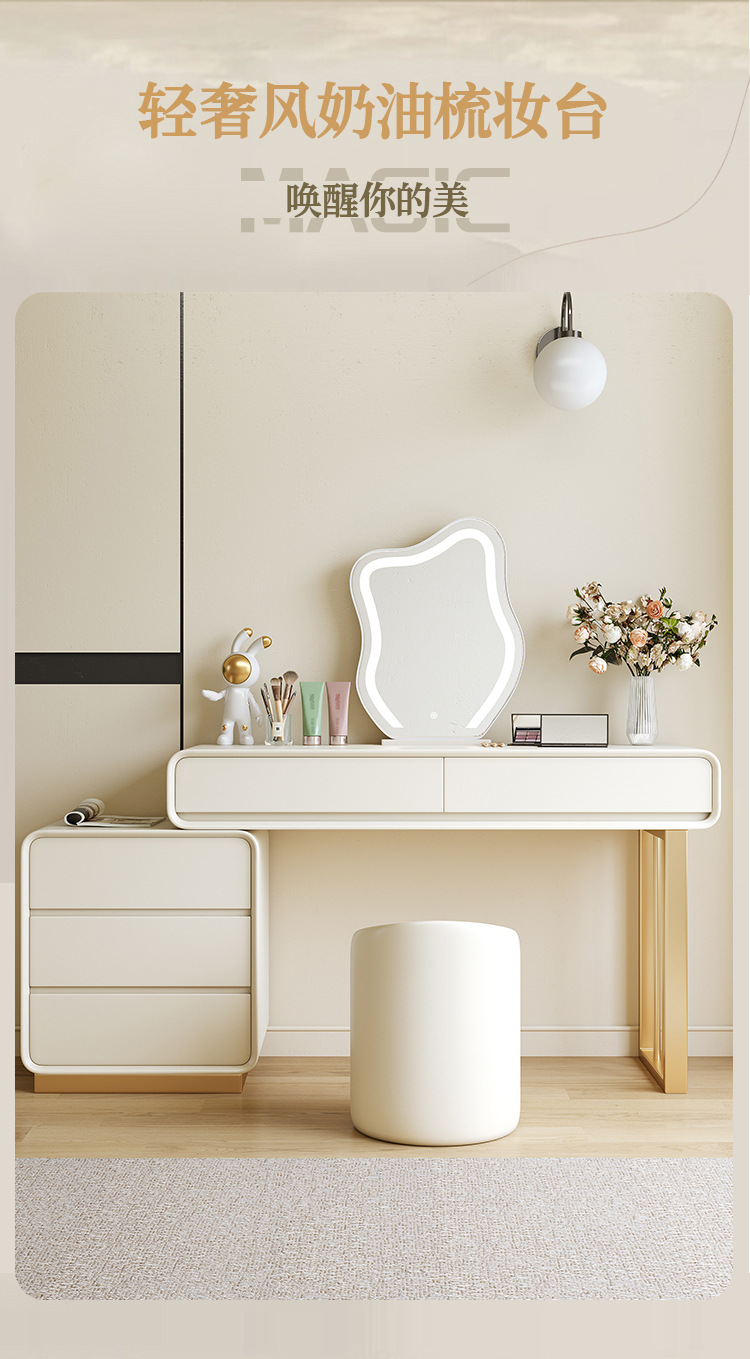 商品名稱:奶油风梳妆台收纳斗柜一体现代简约实木主卧室高级轻奢网红化妆桌
