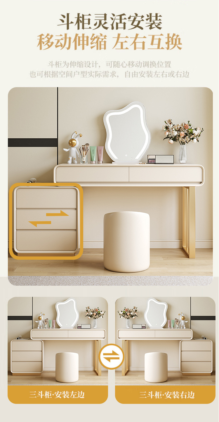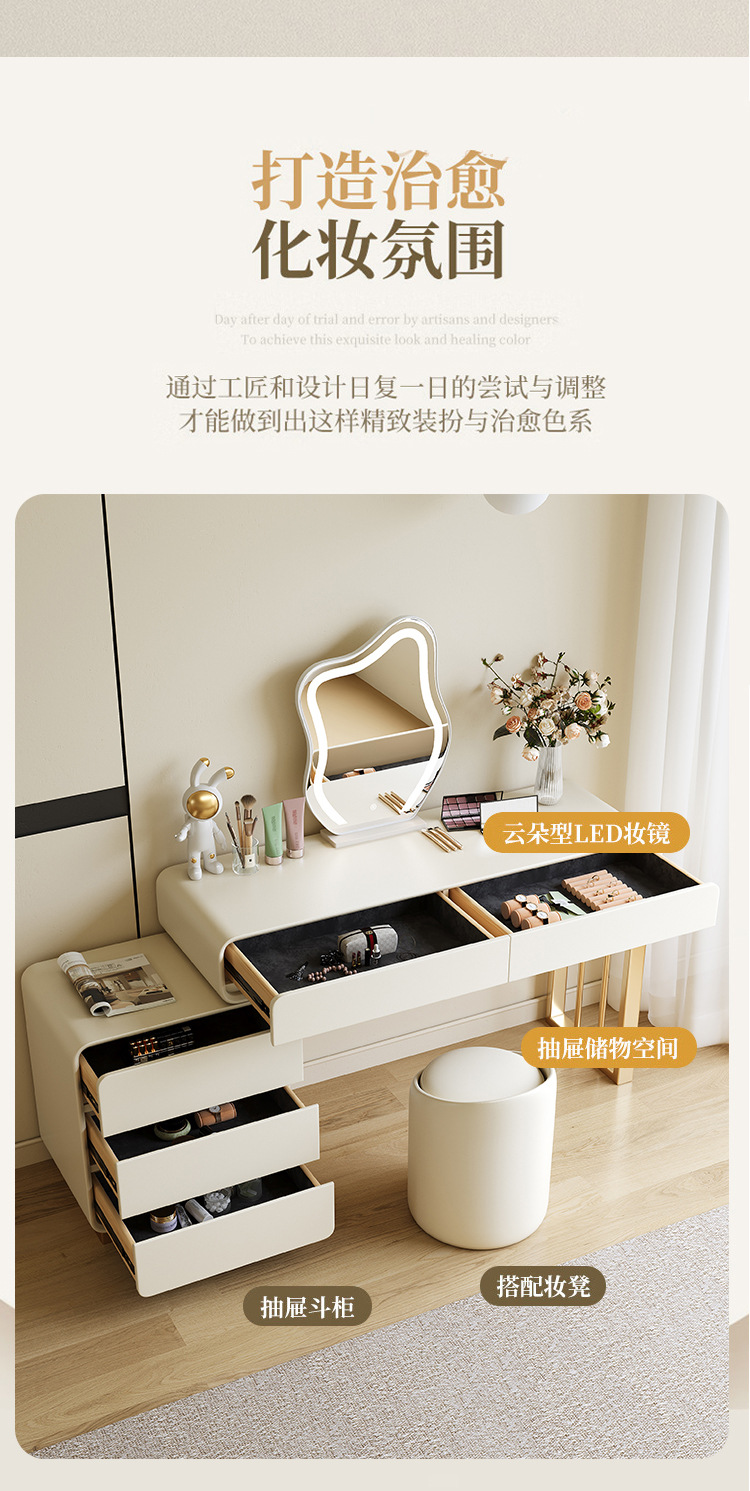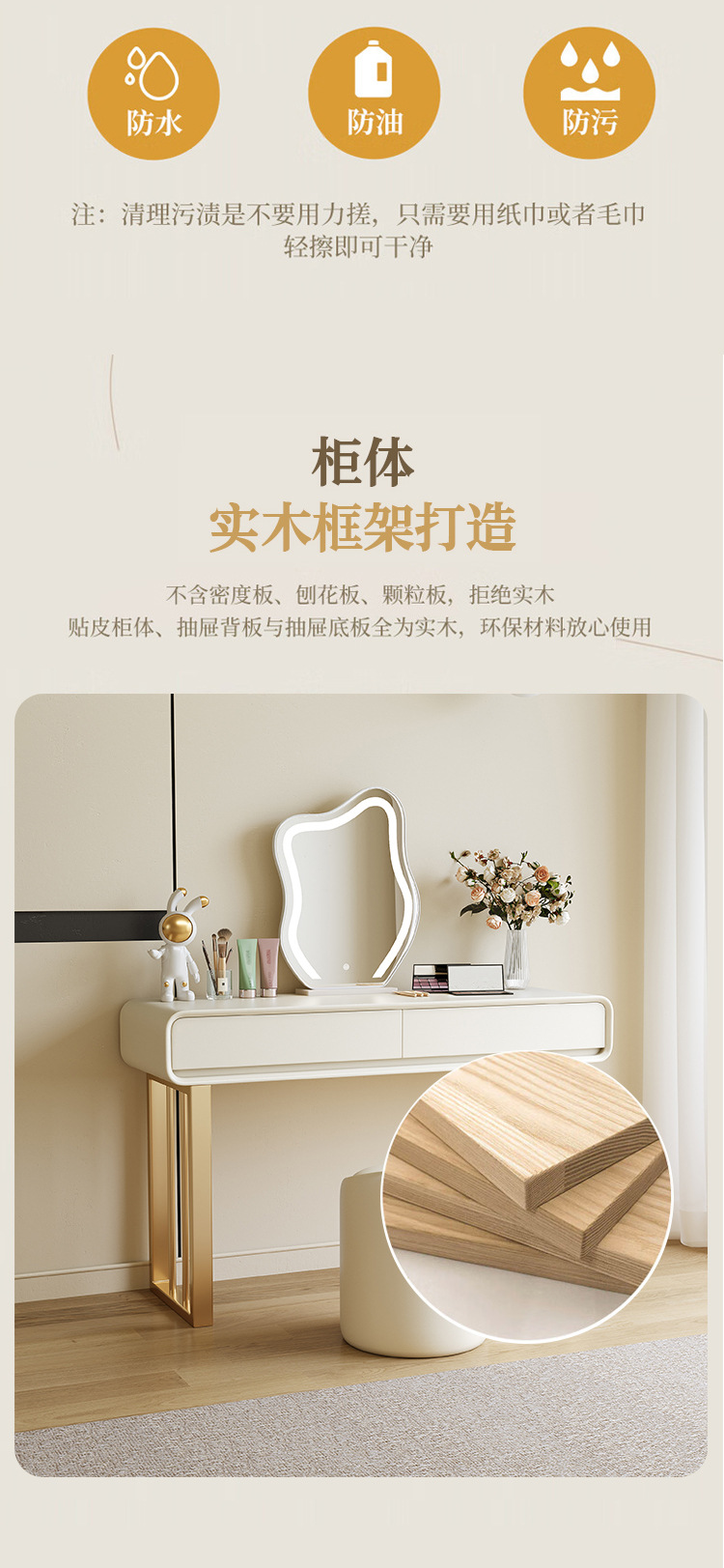 商品名稱:奶油风梳妆台收纳斗柜一体现代简约实木主卧室高级轻奢网红化妆桌