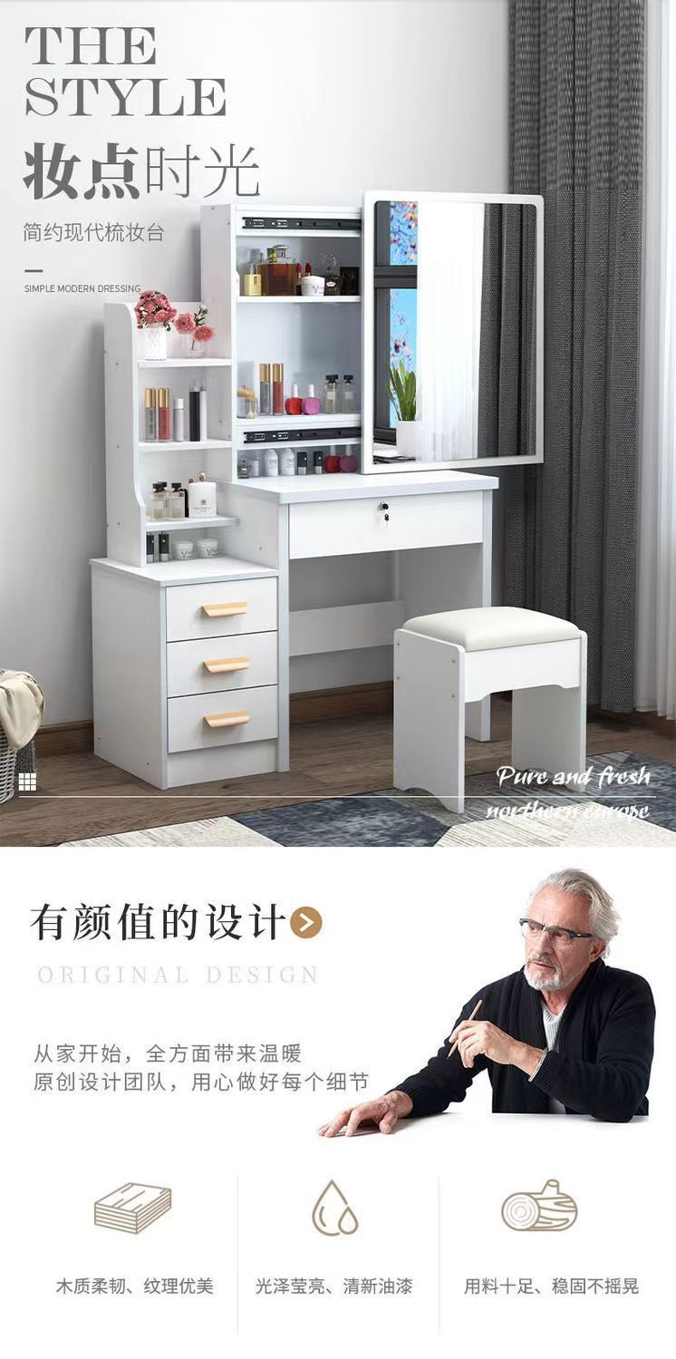 商品名稱:源头工厂梳妆台卧室小户型带灯现代简约梳妆柜收纳一体跨境化妆桌