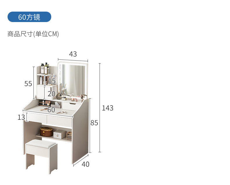 商品名稱:欧式化妆桌子一体现代简约网红ins风小户型家用梳妆台卧室收纳柜