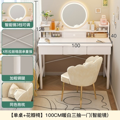 100cm三抽一门★单桌+花瓣椅+智能镜三档可调★