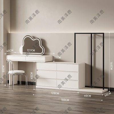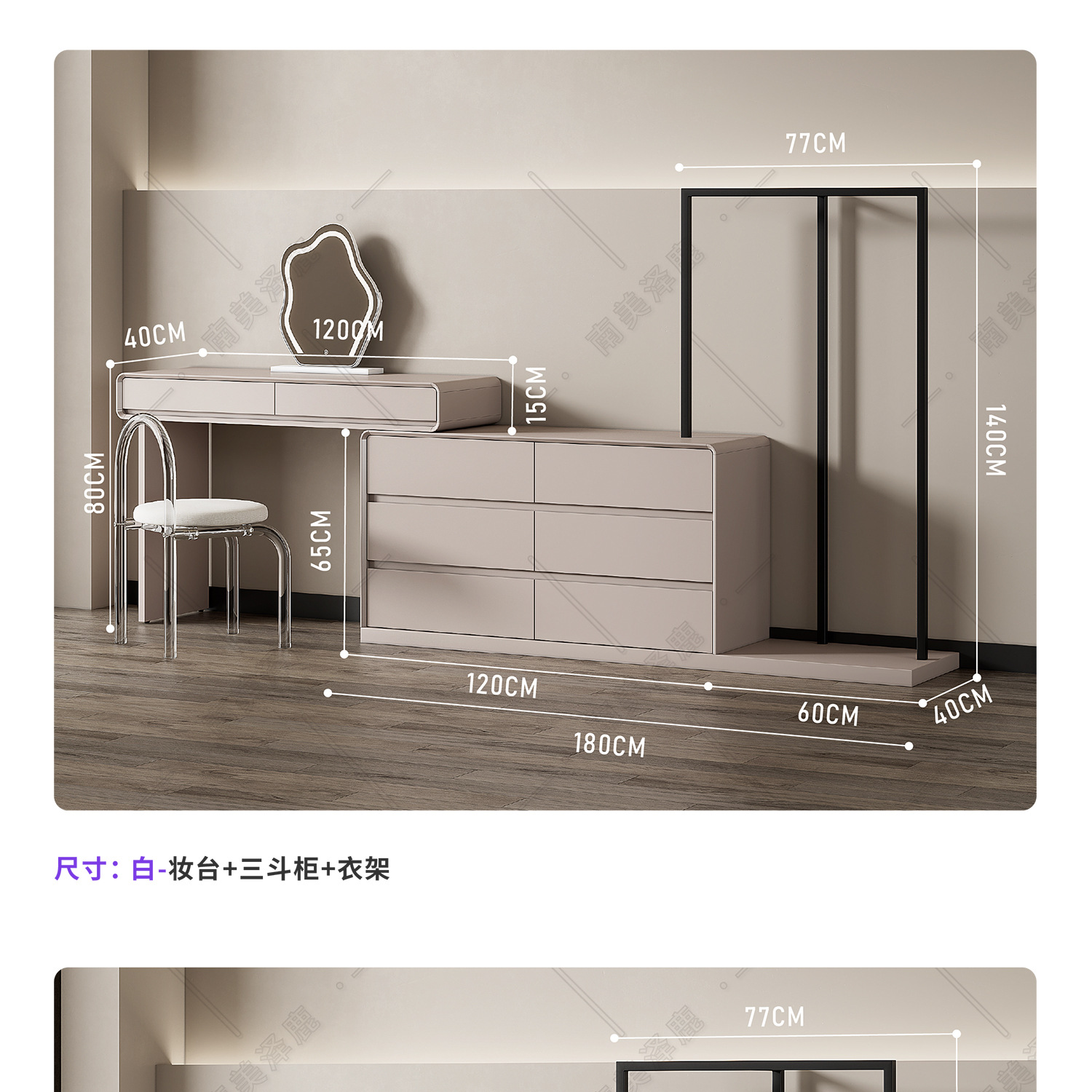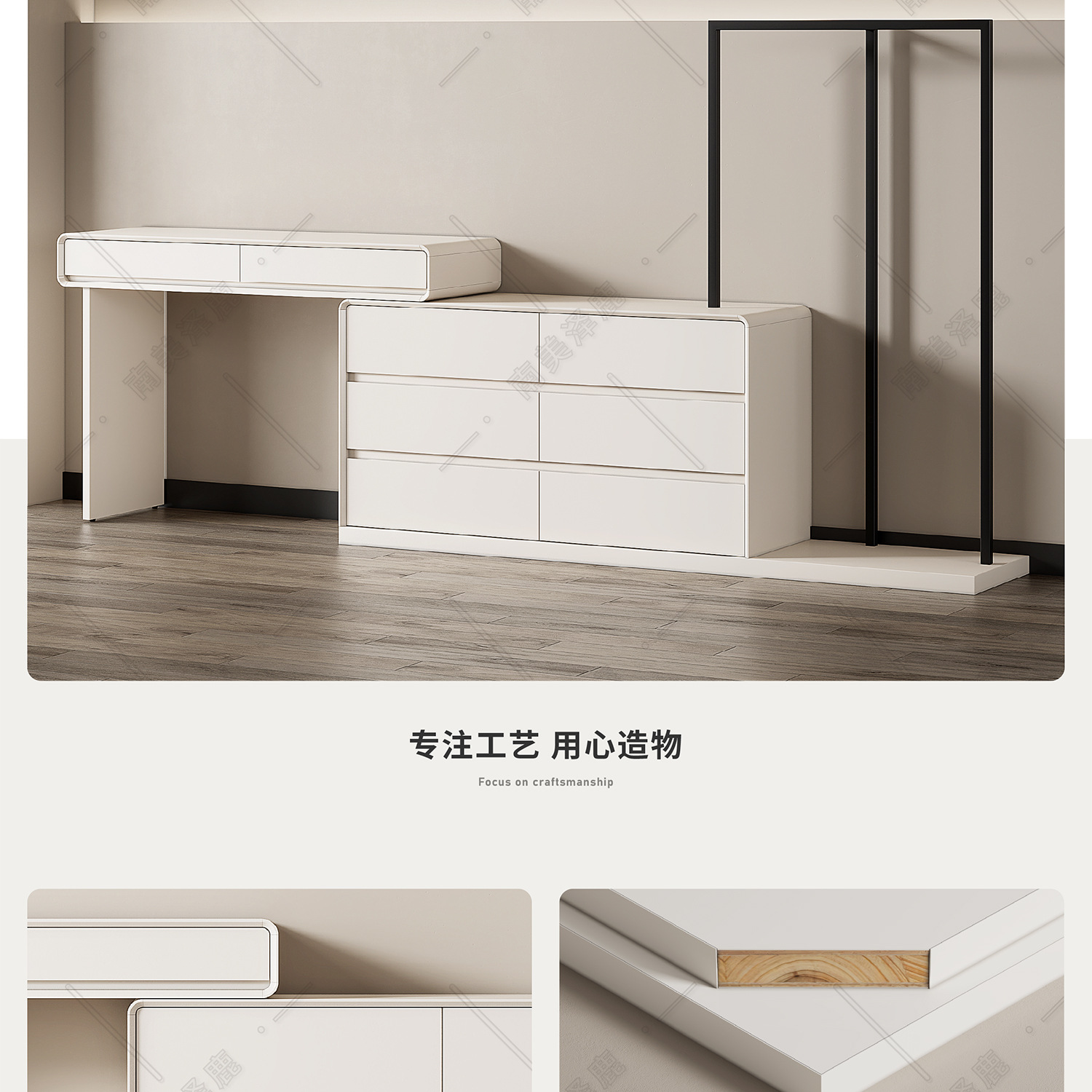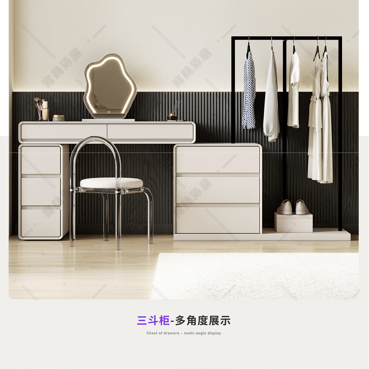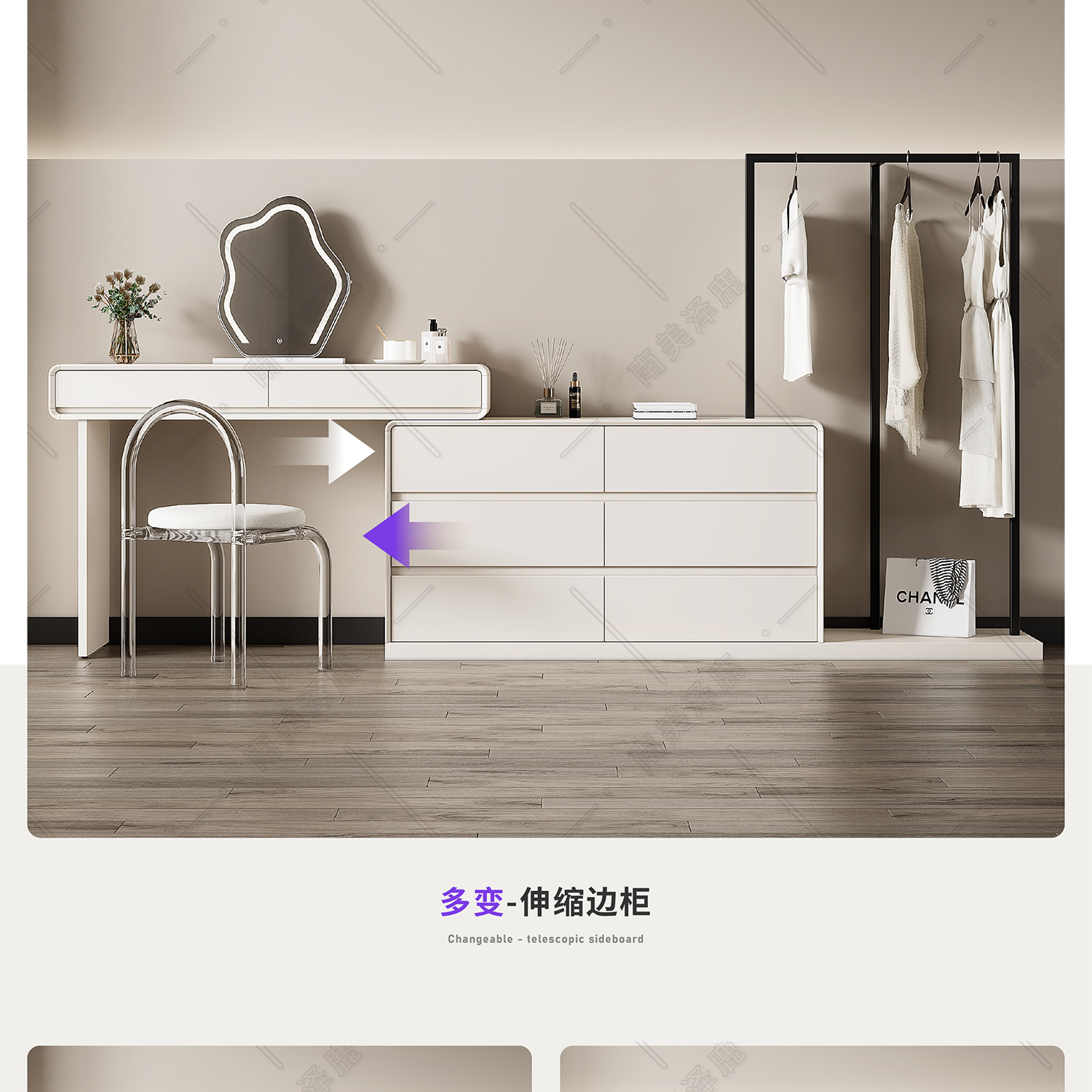 商品名稱:实木梳妆台斗柜一体意式轻奢主卧可伸缩现代极简感简约床尾柜